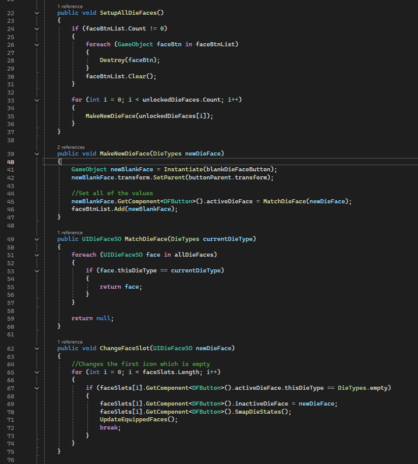 Currently, the player can move and explore throughout a fully designed world. Their are a small bunch of die faces to use which change how you play, and there are a few unique enemies to fight. There are also NPCs to talk to, shops and a currency system, saving/loading using JSON data and much more planned!